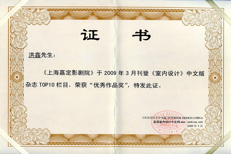 《上海嘉定影剧院》荣获“优秀作品奖”
